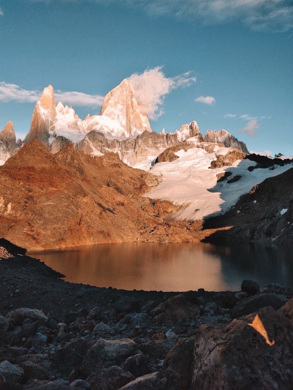 Cada día aquí es un encuentro con lo majestuoso: contemplar el amanecer sobre el Fitz Roy, caminar junto a glaciares azul profundo o disfrutar de una cabalgata en paisajes que quitan el aliento. La Patagonia en su máximo esplendor, combinando aventura y contemplación, donde cada experiencia deja recuerdos imborrables y una conexión profunda con la naturaleza imponente argentina.